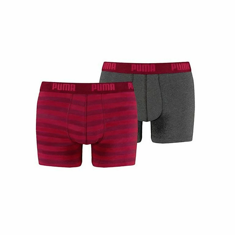 Confezione di due boxer da uomo in cotone del marchio Puma: uno, in tinta unita e, un altro, a righe.